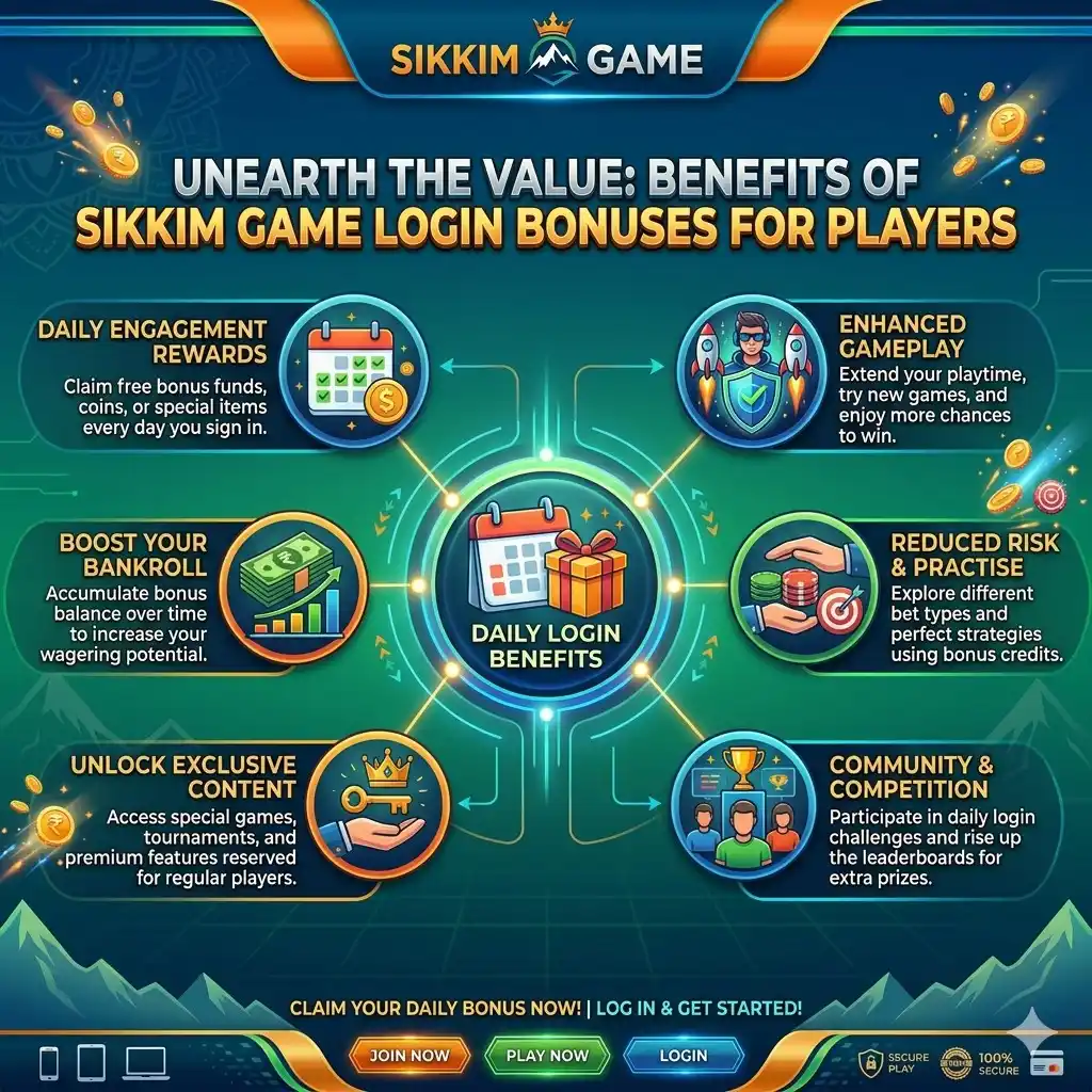 The Sikkim Game Login bonus is a specialized incentive program designed to reward active members of the Sikkim Games Platform. Unlike standard deposit matches, this bonus is specifically tied to account activity and consistent engagement. It serves as a “daily check-in” reward, ensuring that players who perform a Sikkim login bonus action are credited with small amounts of gaming capital or “experience points” simply for staying active.